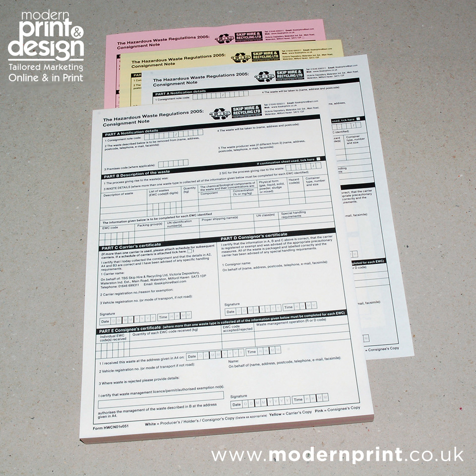 For top-notch service from trusted waste transfer note printers in Pembrokeshire, contact Modern Print & Design now on 01646 682676.